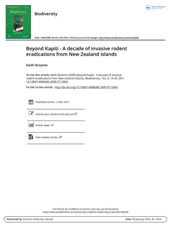 New Zealand, an archipelago of more than 2000 islands, has a terrestrial fauna especially depauperate in native land mammals. Kiore (Rattus exulans) was the first of four rodent species introduced by people. A project to eradicate invasive rats from Kapiti Island in 1996, represented a turning point in the technology, complexity and scale at which managers of natural heritage on New Zealand islands could operate. This paper includes case studies of some significant projects targeting rodents, sometimes with other introduced mammals, undertaken in the 12 years following Kapiti. Details of the methods, costs, results and outcomes are provided for Kapiti, Whenua Hou, Tuhua, Campbell, Raoul, Hauturu, Taukihepa, and Pomona islands, collectively representing a total of over 23,000 ha of habitat cleared of introduced mammals.