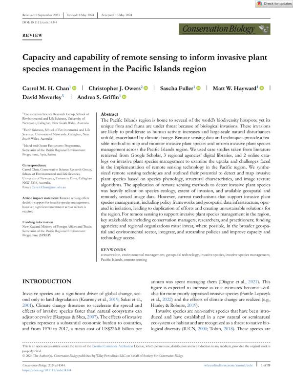 The application of remote sensing methods to detect invasive plant species was heavily reliant on species ecology, extent of invasion and available geospatial and remotely sensed image data.