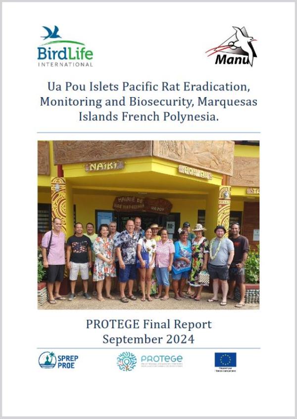 L'opération de dératisation des îlots Ua Pou dans le Pacifique a été entreprise en août-septembre 2023. Elle a tenté, pour la première fois au monde, d'épandre des appâts pour rongeurs par drone depuis un petit navire en pleine mer sur les îlots de Motu Tākaè, Motu Oa et Motu Mokohe, à Ua Pou, dans les îles Marquises. L'application aérienne d'appâts n'a permis d'appâter que deux des trois îles sur l'ensemble de leur territoire. Néanmoins, le suivi effectué 12 mois plus tard a confirmé que Motu Oa et Motu Tākaè sont exempts de rats, de même que la partie partiellement isolée de Motu Mokohe, qui a également été appâtée. Le succès de l'éradication est soutenu par l'établissement de connaissances et de pratiques en matière de biosécurité dans l'ensemble des communautés Ua Pou. Les résultats de la surveillance des oiseaux de mer et d'autres aspects de l'environnement contribueront à maintenir l'engagement dans le temps et profiteront à l'ensemble de la communauté de la conservation. L'opération a démontré que les drones pouvaient être utilisés à partir d'un bateau pour l'éradication des rongeurs, mais elle a été limitée par les vents forts et la houle. Un navire plus grand avec un tirant d'eau plus important est recommandé pour des opérations similaires à l'avenir et permettrait probablement d'augmenter le nombre de jours de vol et d'améliorer la facilité avec laquelle les pilotes de drones décollent et atterrissent.